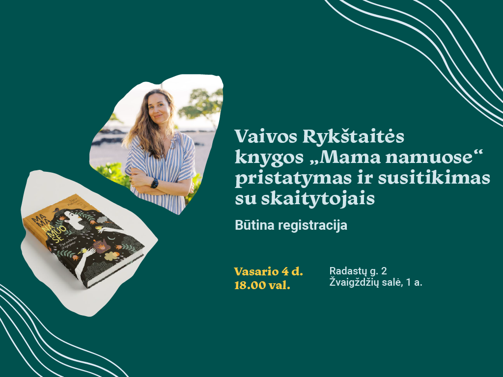 Kviečiame į atvirą ir nuoširdų susitikimą su rašytoja, nuomonės formuotoja Vaiva Rykštaite jau vasario 4 d. 18.00 val. Ąžuolyno bibliotekos Žvaigždžių salėje (Radastų g. 2, 1 a.). Susitikimo metu Vaiva ne tik pristatys savo naująją knygą „Mama namuose. Trys valandos iš rytojaus“, bet ir kvies renginio lankytojus į šiltą, jaukų pokalbį...