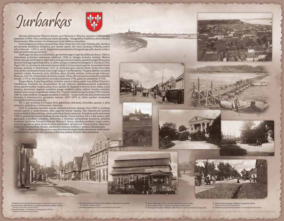 Jurbarkas Miestas dešiniajame Nemuno krante, prie Nemuno ir Mituvos santakos, urbanistikos paminklas (1969). Viena svarbiausių miesto įžymybių – kunigaikščių Vasilčikovų dvaro likučiai. Senamiestyje išliko kadaise čia klestėjusios žydų kultūros autentikos. Archeologinių tyrinėjimų duomenimis, šioje vietoje buvo dvi pilys: lietuvių pilis, stovėjusi ant Jurbarko piliakalnio (Bišpilio), prie Imsrės upelio, bei viena seniausių Vokiečių ordino pilių Lietuvoje – 1259 m. ant Šv. Jurgio kalno pastatydinta Georgenburgo pilis, davusi vardą ir šalia jos įsikūrusiai gyvenvietei. Pasibaigus karams su kryžiuočiais, gyvenvietė augo ir tapo karališkuoju dvaru. 1502 m. dokumente Jurbarkas vadinamas valsčiumi. 1540 m. įsteigta Jurbarko muitinė. Miestas |