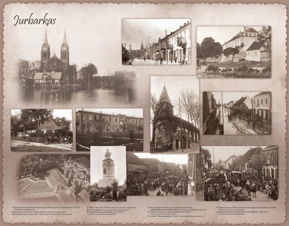 Vasilčikovai. Pastarieji čia šeimininkavo iki pat Lietuvos nepriklausomybės paskelbimo: dvarą aptvėrė aukšta raudonų plytų tvora, pastatė du flygelius ir mūrinę dvaro miškų urėdo kontorą, buvusiame degtinės sandėlyje įrengė nedidelę cerkvę, atidarė liaudies mokyklą, dosniai rėmė naujos neogotikinio stiliaus Švč. Trejybės bažnyčios (pašventinta 1907) statybą. 1867 m. šalia medinės sinagogos pastatyta ir mūrinė – naujas Jurbarko žydų bendruomenės dvasinio ir visuomeninio gyvenimo centras. 1867–1872 m. iškilo medinė vienbokštė evangelikų liuteronų bažnyčia. XIX a. per Jurbarką iš Prūsijos buvo gabenama uždrausta lietuviška spauda; ji plito miestelio apylinkėse ir tolimesnėse vietovėse. 1919 m. Jurbarkui suteiktas miesto valsčiaus teisėmis statusas. Nuo 1928 m. pradėjus |